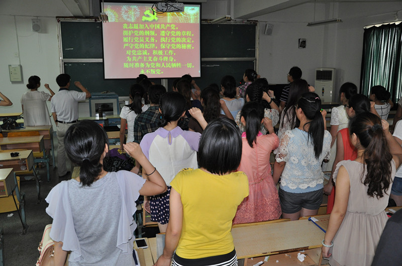 首先,全体与会党员在总支委员姜颖婷老师的带领下进行了庄严的宣誓。每个人都用发自内心的声音抒发对党忠诚的决心。随后,10英教3班孙佳同学作了代表发言。道出了所有预备党员和正式党员的心声,表达了自己要恪守在党旗下的诺言,更加严格要求自己,争做一名优秀的共产党员。最后,魏小星书记从四个方面对所有参加本次活动的党员提出了希望和要求,勉励大家要时刻保持共产党员的先进性,在各方面起先锋模范作用,为共产主义事业生命不息,奋斗不止。