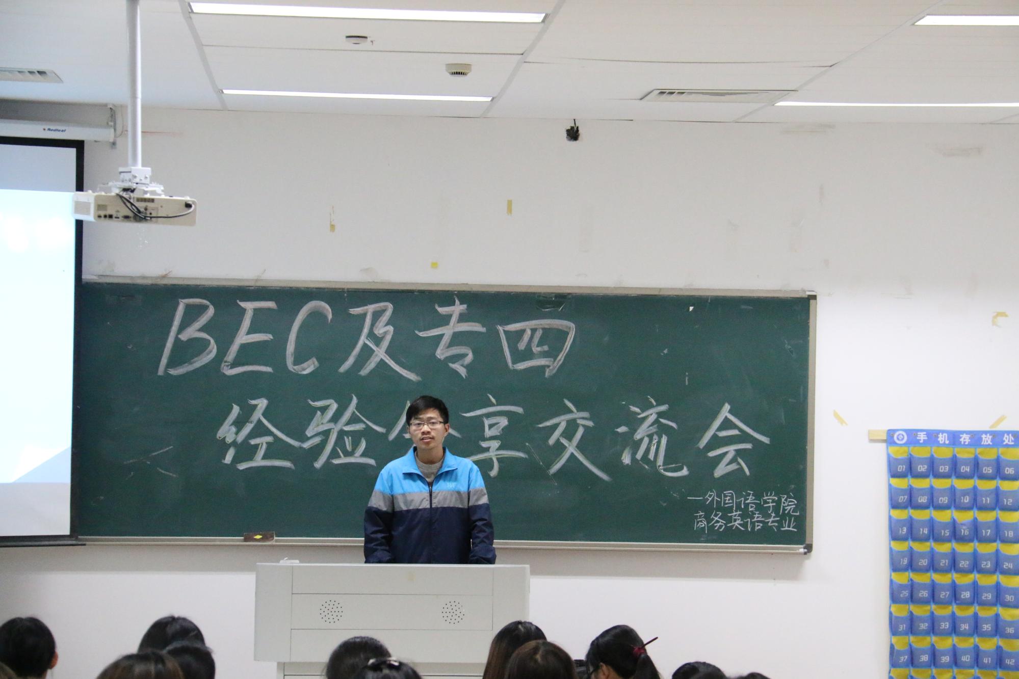 此次交流会由商务英语专业2014级员工张方振、郉斯加主讲。两位同学分别通过BEC中级、高级,并均以82分的好成绩通过英语专业四级考试。