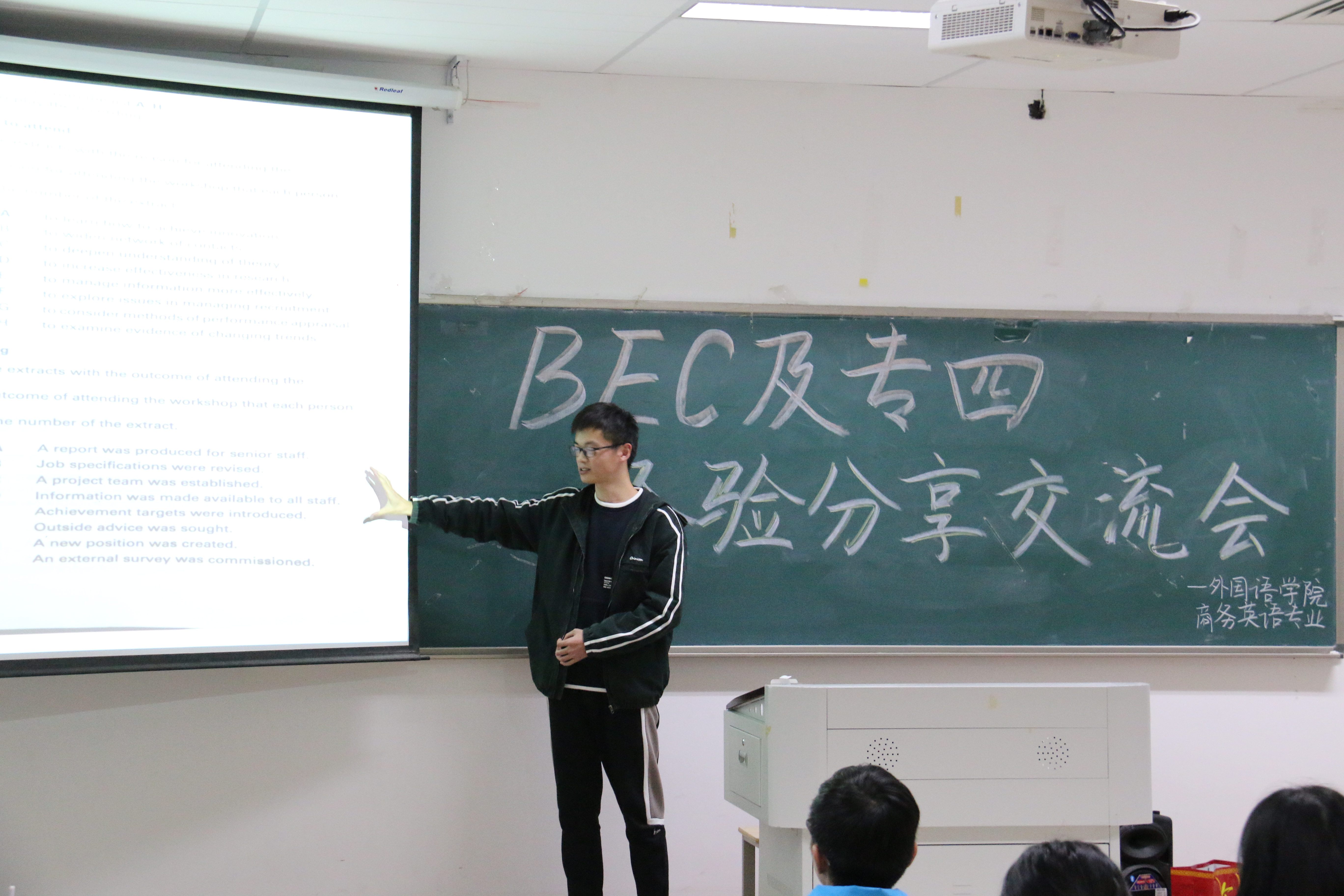 为促进商务英语专业员工优良学风建设,2017年10月18日下午,商务英语专业BEC(剑桥商务英语)及英语专业四级经验分享交流会在教学楼A1401举行,商务英语专业各年级员工参加。活动由公司员工会学习部承办。