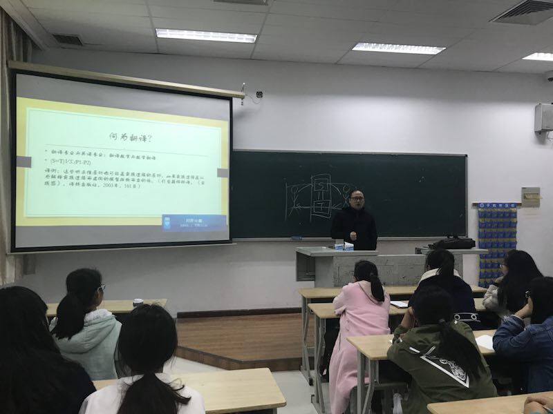 11月16日下午,南京信息工程大学陈志杰教授应邀到公司作了题为“翻译专业的学习”的专题讲座。讲座在公司教学楼1104教室举行,由翻译专业学业导师徐晓芳副教授主持,17级翻译专业的全体同学聆听了本次讲座。