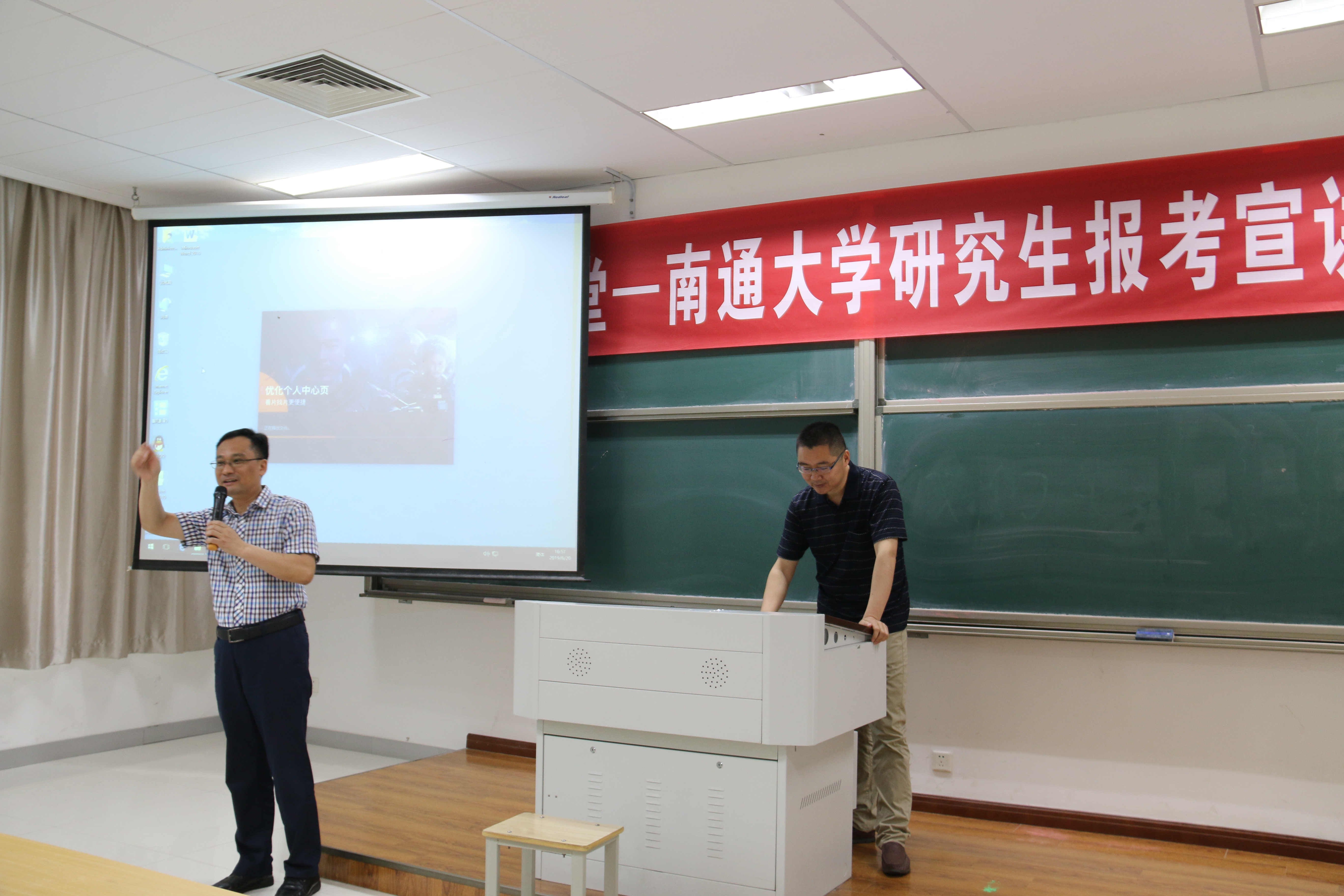 交流之后,南通大学伟德体育副经理佘军、副经理徐托等四位领导来教学楼A1201举办“南通大学研究生招生宣讲会”,零距离为外院学子答疑解惑。