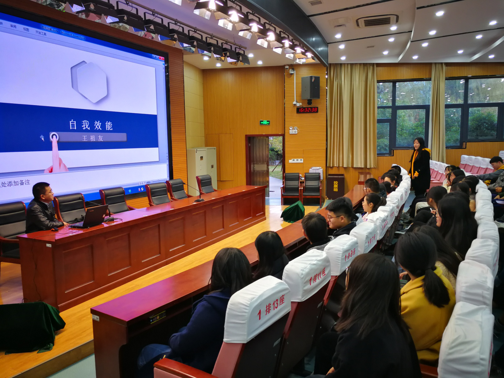 首先,王祖友教授为员工讲述以“自我效能”为中心的一系列话题,他通过列举自己身边的例子介绍了“自我效能”的重要性,告诉员工自我效能对于自身的影响:告诉自己,自己能做得好时,我们往往做得更好。他还讲到影响自我效能的因素有成功经验,替代性经验,社会性评价,情感因素等。比如对于外语学习者学习效率的主要影响因素之一就是紧张焦虑。可以说,焦虑我们人人都有,但焦虑不全是坏,有时焦虑会化作动力让我们被动学习而使学习效率大大提高。可我们依然要克服交际恐惧,考试恐惧,负面评价恐惧带来的焦虑。在情感效能的运用中,我们要把人的情感转化为行动驱动力,在学习效能的运用中,我们要达到“乐学”的境界。