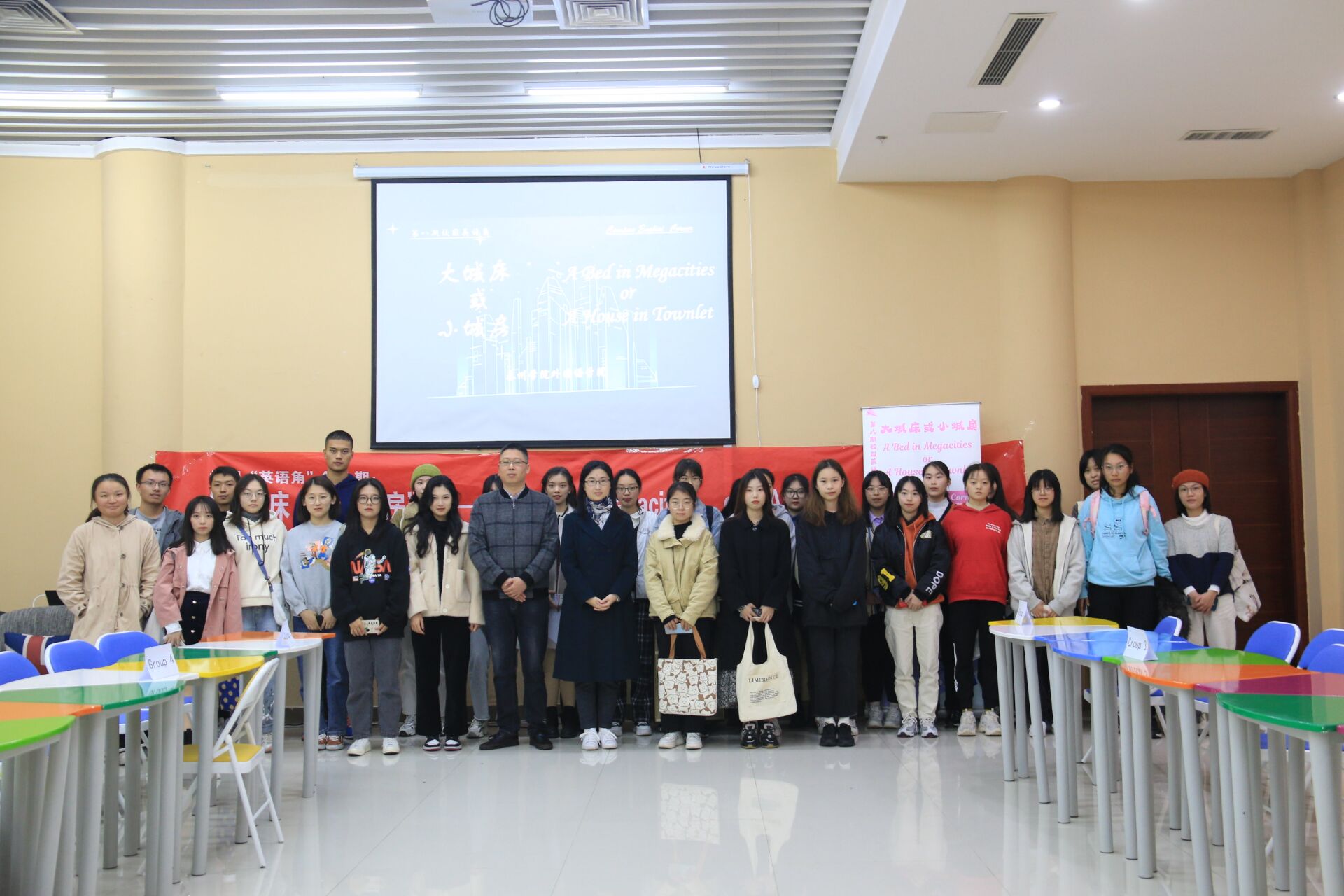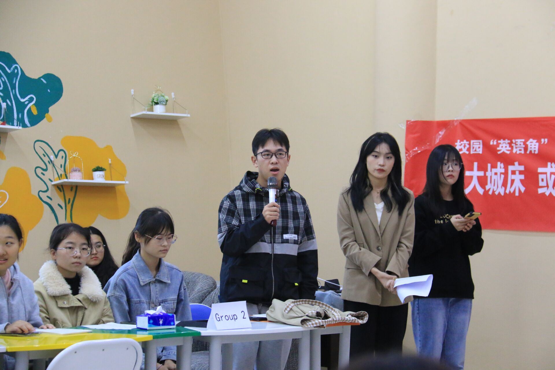 “小城故事多,充满喜和乐;大城多精彩,一切未可知”。本次英语角活动的主题是“A Bed in Megacities or A House in Townlet”,活动以辩论赛的形式展开,共8个小组,每组4人,单数组别选择正方“在大城市就业好处多”,双数组别选择反方“在小城镇就业好处多”,两两对辩。