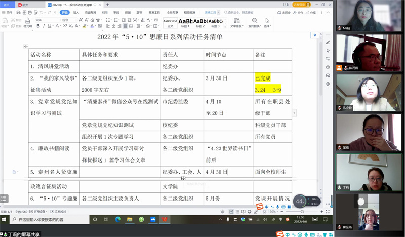 2022年4月6日下午,公司党总支理论中心学习组开展今年第2次集中学习研讨。因疫情原因,会议分线上(腾讯会议)和线下(D2333)同时进行。