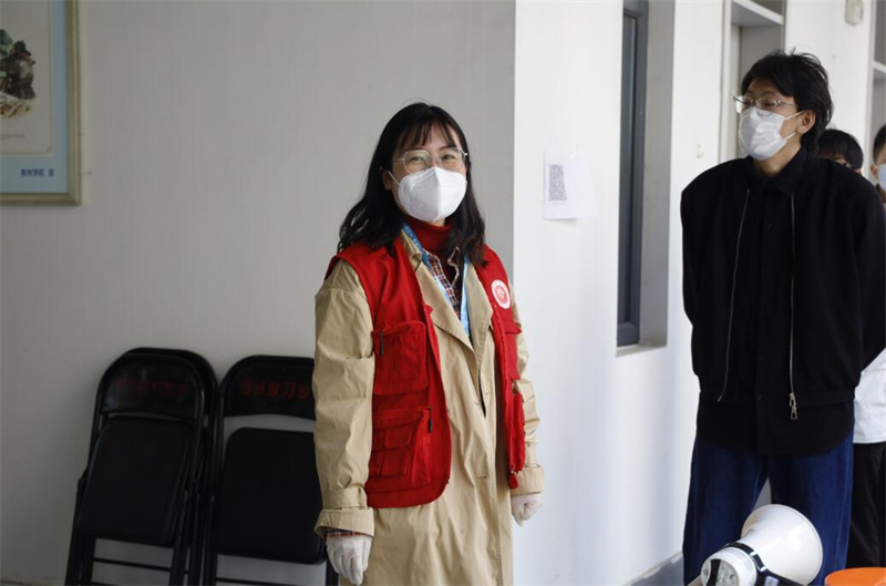 党员教师在核酸现场维持秩序