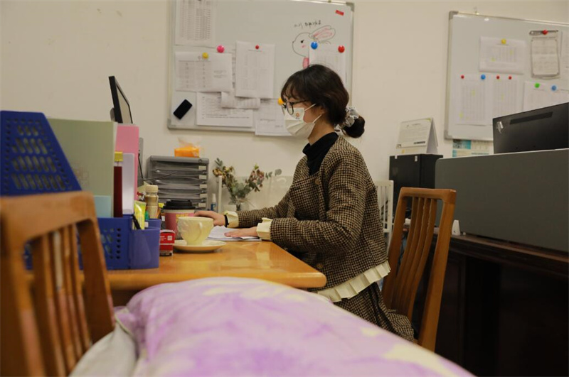 唐思谨是今年刚参加工作的新教师,也是公司近期能进校的唯一辅导员。为了保证员工有事能及时联系,她勇挑重任,克服生活中的各种不便,以校为家,连续多天宿在办公室,及时关注员工的各种情况,分发条形码、核查员工在校情况、统计数据、排查安全隐患,解决宿舍同学个性化需求,与重点员工谈心谈话。