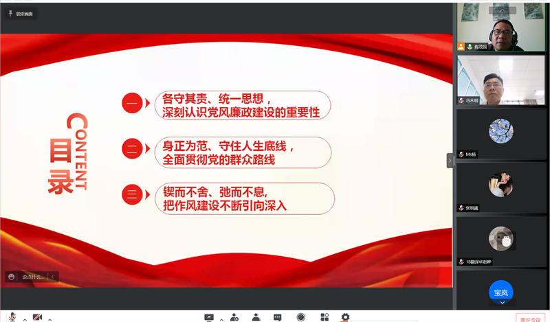 为进一步增强党员干部廉洁自律意识,筑牢拒腐防变思想道德防线。5月6日下午,公司党总支运用腾讯会议,开展了一堂线上党风廉政建设专题党课,全体师生党员参加。