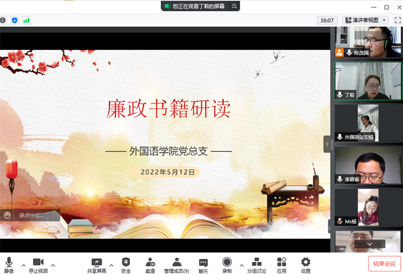 “5·10”思廉日之际,为开展好反腐倡廉警示教育,切实加强公司党风廉政文化建设。5月12日下午,公司党总支开展了廉政书籍线上研读活动,公司全体党员领导干部参加。
