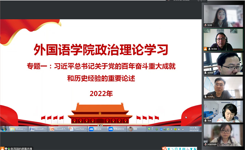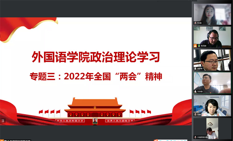 会议共开展了五个方面的学习,分别是:习近平总书记关于党的百年奋斗重大成就和历史经验的重要论述,2022年全国两会精神,习近平总书记关于五个“必由之路”、中国式现代化道路的重要论述,习近平总书记在中国人民大学考察时重要讲话精神和师德师风教育。