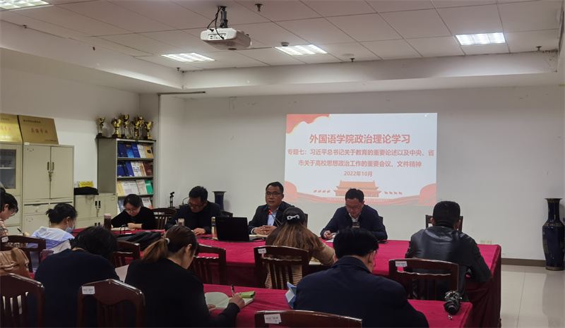 随后,党总支书记陈茂国领学了习近平总书记关于推进马克思主义中国化时代化的重要论述、习近平总书记关于教育的重要论述和中央、省市关于高校思想政治工作的有关会议、文件精神以及《2022年bevictor伟德思想政治工作要点》等。