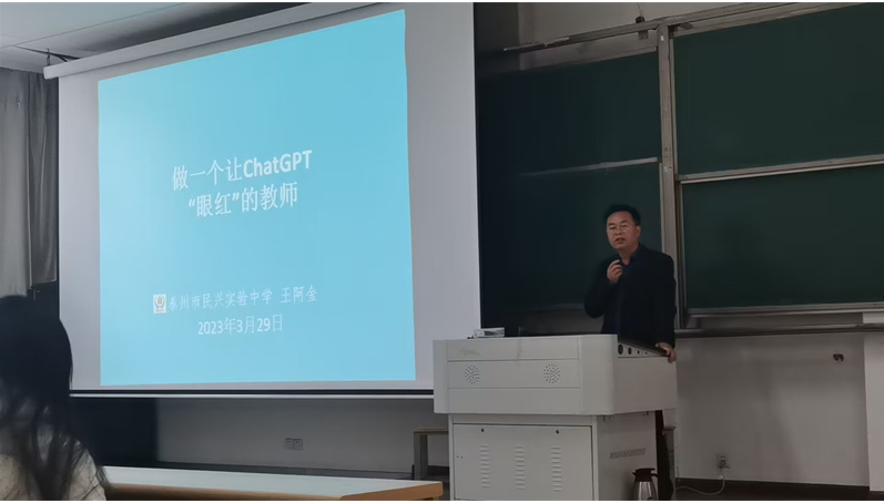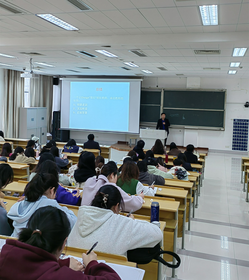 3月29日,公司邀请泰州市民兴实验中学高中部王阿金董事长面向英语师范生开设题为“做一个让ChatGPT眼红的教师”的师德讲座。讲座由公司经理李更春主持,2020级英语(师范)专业全体员工参加本次讲座。