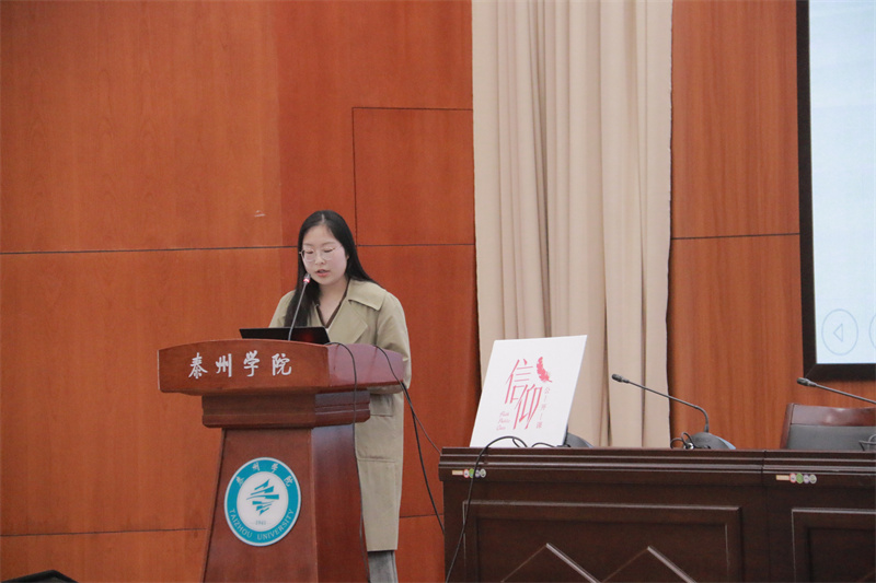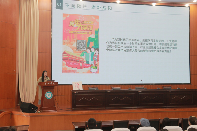 讲坛中,陆湘玥同学围绕“聚青春之火,燃时代之光”主题,从德、智、体、美、劳五个方面展开讲述。她结合自身经历,号召同学们多参加有益的文体、实践和志愿活动,丰富老员工活之余,多为社会做贡献。最后,她强调要做一名“笃信达雅,融通中外”的外语人,希望能与同学们共勉。