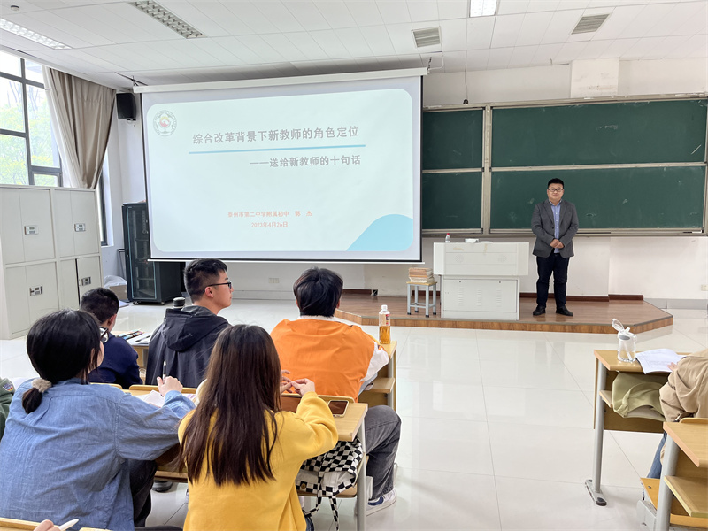 三场讲座以新课改、双减为背景,从不同角度对课堂教学、班主任工作、师生关系、新教师专业成长与发展等方面进行阐释,不仅帮助同学们厘清了立德树人、大观念教学、英语学科核心素养、英语课程要素等核心概念的内涵,而且进一步明确了未来初中英语教师所必备的英语学科和课程教学所具备的专业知识和专业技能。