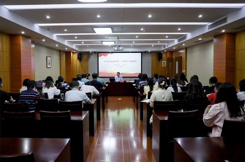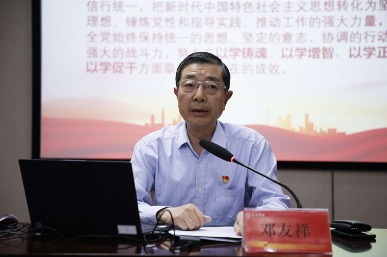 为扎实推进学习贯彻习近平新时代中国特色社会主义思想主题教育走深走实,把主题教育作为推动工作的强大动力,6月7日下午,公司党委副书记邓友祥以《学深悟透新思想 以学促干建新功》为题,为公司党员师生代表讲授主题教育专题党课。公司党员教师和部分员工党员参加学习。