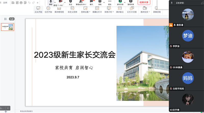 9月7日,公司召开2023级新生线上家长会。公司经理李更春、副书记副经理马永明、副经理周侠,23级全体新生家长参加本次会议,辅导员唐思谨主持会议。会上,经理李更春向家长们介绍了公司雄厚的团队和过硬的教学质量,同时讲解了公司的办学特色、专业培养和发展方向,使家长们充分了解公司的基本情况,为家校协同打下良好的基础。