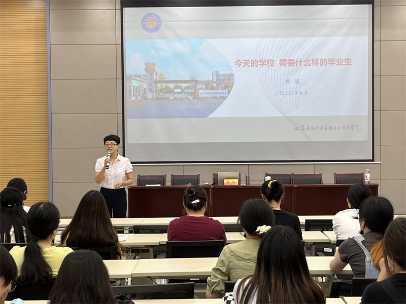 9月15日下午,公司邀请江苏省泰州中学附属初级中学高级教师潘霞来校为师范专业实习生做了《今天的公司,需要什么样的毕业生》的专题讲座。讲座在公司图书馆胡瑗讲堂举行,全体2020级师范实习生、本次实习带队教师及毕业班班主任聆听了讲座。