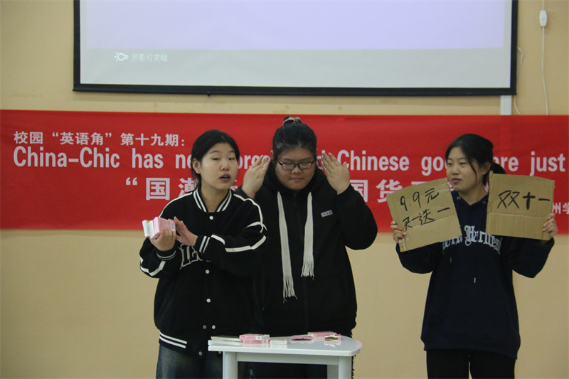 11月11日下午,公司于阳光心理小屋开展第十九期校园英语角活动,本次活动以“国潮新生力,国货正当时”为主题,同学们进行国货产品模拟直播。