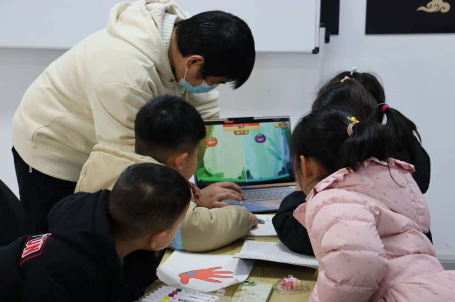 活动中,志愿者们根据孩子们的兴趣,通过动画展示、歌曲演唱、口语交流、游戏互动等小朋友们所喜爱的形式,进行趣味英语的教学。