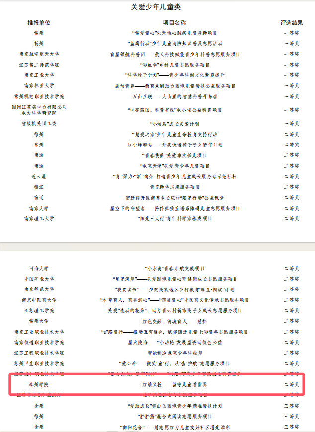 为弘扬“奉献、友爱、互助、进步”的志愿精神,团省委、省青年志愿者协会于8月27日—28日在徐州工程公司举办 2024 年江苏省青年志愿服务项目大赛,公司“红烛义教——留守儿童看世界”项目参加并荣获“关爱少年儿童类”二等奖!