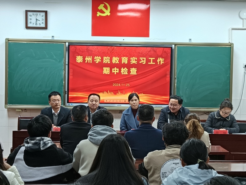 为加强实习工作管理和实践教学基地建设,确保实习工作质量,公司于11月25日、27日对泰兴市洋思中学、泰兴市济川初级中学、江苏省泰州中学附属初级中学的教育实习工作进行了中期巡查。公司党总支书记练红珍、经理李更春、副经理周侠、公司教学督导、英语教育系主任刘晶晶以及实习带队老师韩冬玲、姜颖婷、张宏娟参加了本次巡查工作。