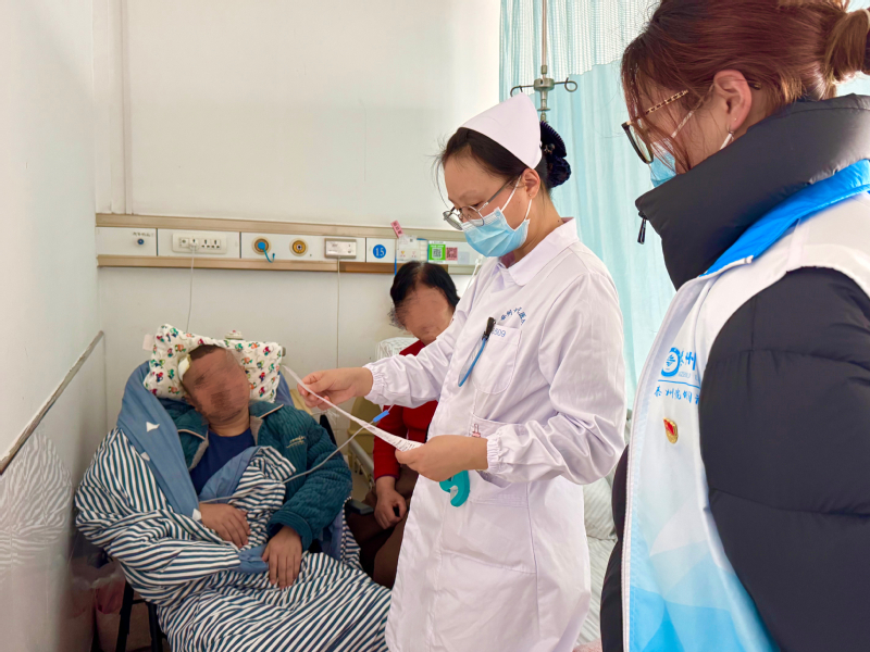 公司党员教师代表和青年志愿者前往泰州人民医院肿瘤科,在病房内开展志愿服务活动,累计服务患者50余人次,诠释了“奉献、友爱、互助、进步”的志愿精神。