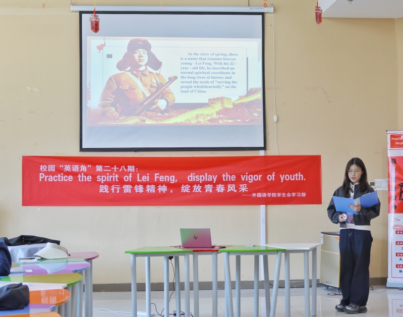活动中,同学们通过展示精心准备的雷锋主题图片,结合自身实践经历,用英语生动阐释对雷锋精神的理解。参与者积极分享志愿服务故事,流利的英语表达展现出新时代青年传承雷锋精神的热情,现场气氛活跃,形成了思想交流的良性互动。