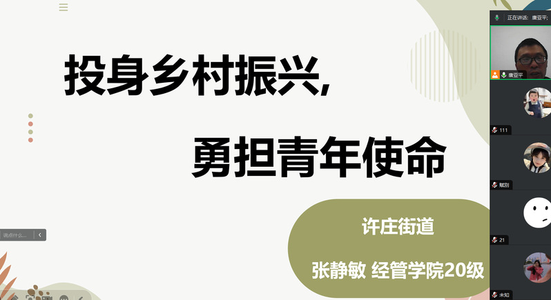 活动还邀请了乡村振兴计划志愿者、公司优秀员工张静敏作“投身乡村振兴,勇担青年使命”的专题分享。她结合自身服务基层的实践经历,生动展现了青年学子在乡村振兴一线的成长与收获,进一步激发了同学们投身基层服务的热情。