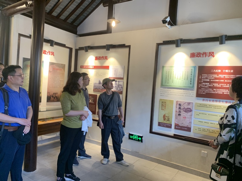 下午14时,教职工们在沙沟古镇开启“行走的历史课”。沿着青石板路探访原沙沟市政府旧址,泛黄的《苏中报》合订本、老式油印机等展品重现抗战时期“三三制”民主协商场景。翻译系主任胡波感叹:“来到苏中公学旧址廉政教育基地参观后,对我们党员教师深化党性教育、强化纪律规矩意识具有重要启示。”