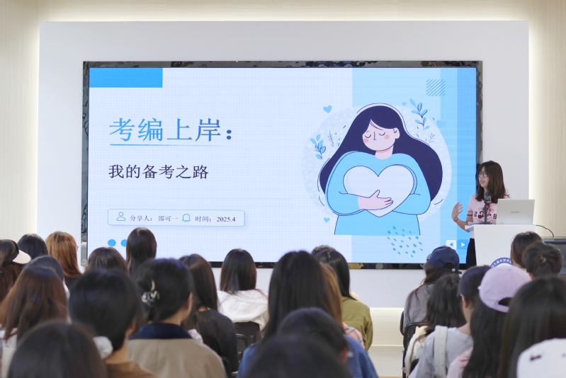 为精准破解考编备考难题,4月23日,公司在就业服务站举办“上岸倾囊·筑梦引航”信仰公开课,活动特邀2021级成功考编的郑沁雨、邵可一担任主讲,为22-24级百余名学子传授备考经验。