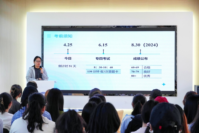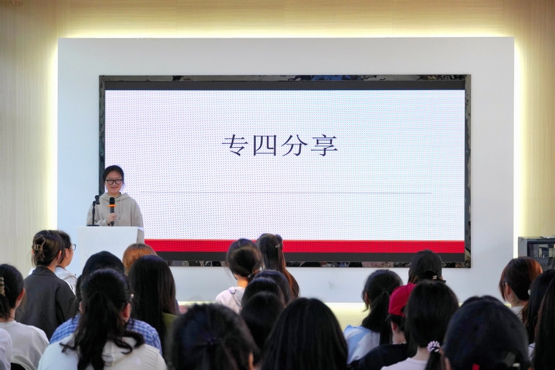 为助力英语专业员工高效备考专四,4月25日,公司在人才服务中心成功举办“学长学姐说”专四经验分享会。2022级英语师范专业专四优秀学子张启月、汪雨萌受邀主讲,为学弟学妹传授备考策略。